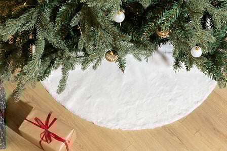 Alfombra de árbol de Navidad peluche, 90 cm de diámetro, blanco