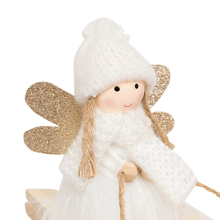 ANGEL EN TRINEO. 14.5 CM DE ALTO. MDF BLANCO Y DORADO