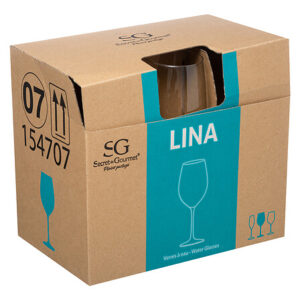Caja con cuatro copas tipo balón, perfectas para gintonic y otros combinados. Fabricadas con cristal transparente.