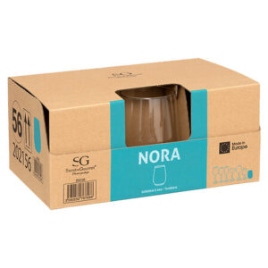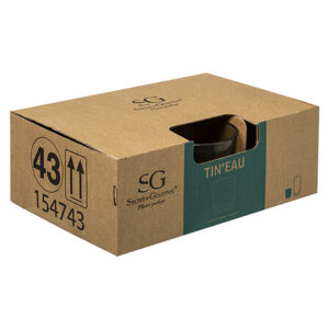 Caja con cuatro copas tipo balón, perfectas para gintonic y otros combinados. Fabricadas con cristal transparente.