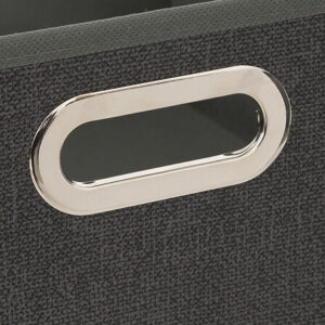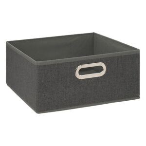 Caja para el almacenamiento cuadrada, fabricada con polipropileno en color amarillo, con los remaches de metal cromado. El complemento perfecto para mantener ordenados los estantes modulares.