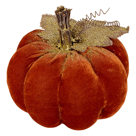 CALABAZA POLIESTIRENO Y TERCIOPELO. 19 CM DE DIAMETRO. NARANJA