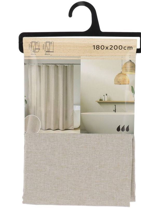 CORTINA DE DUCHA POLYESTER ASPECTO LINO 180X200 CM TOPO