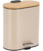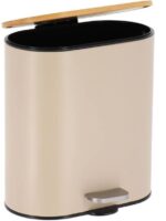 CUBO DE BASURA OVAL METAL CON TAPA AMORTIGUADA BAMBU 5L BEIGE