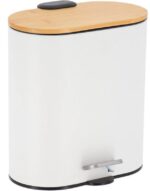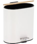 CUBO DE BASURA OVAL METAL CON TAPA AMORTIGUADA BAMBU 5L BLANCO
