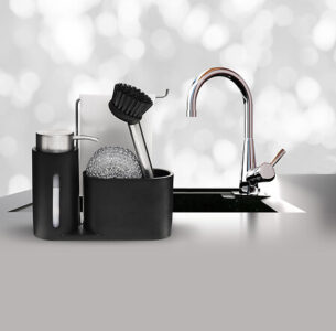 DOSIFICADOR DE JABON CON ESPONJA 300ML NEGRO