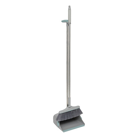 Escoba y recogedor giratorios gris y azul