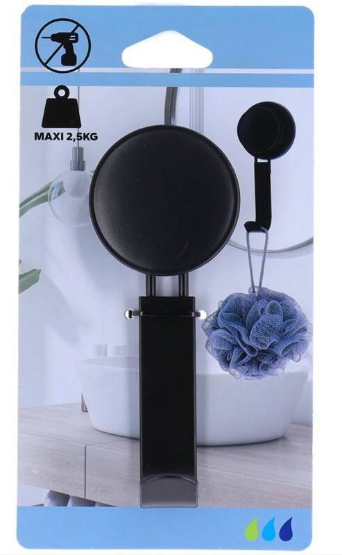 Inicio Almacenaje y organización Perchas y colgadores GANCHO METAL SOBRE VENTOSA NEGRO