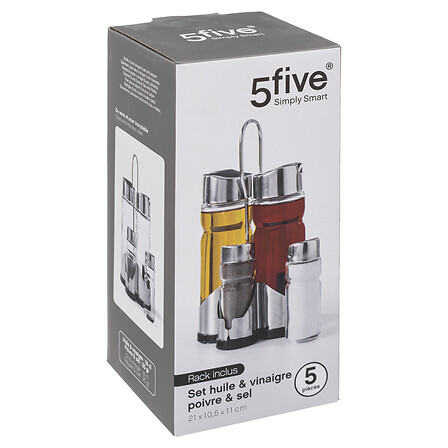 Juego de botellas para aceite y vinagre de 0,17 l, salero y pimentero con soporte