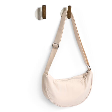 JUEGO DE 2 PERCHEROS ADHESIVOS CASSIE ALTURA 8.2 CM METAL Y MADERA BEIGE