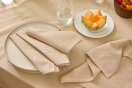JUEGO DE 4 SERVILLETAS JOY 40X40 CM BORDADO LINO BEIGE