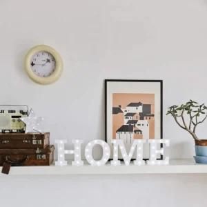 Letra con luces cálidas led. Medidas 15,5×15,5×3 cm. Funciona con dos pilas AAA no incluidas