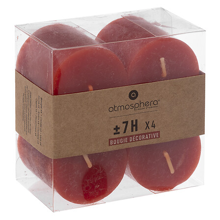Lote de 4 velas votivas Olia diám. 4,5 cm rojo