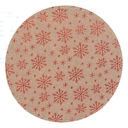 Mantel individual de 38 cm de diámetro con efecto de yute y copo de nieve rojo