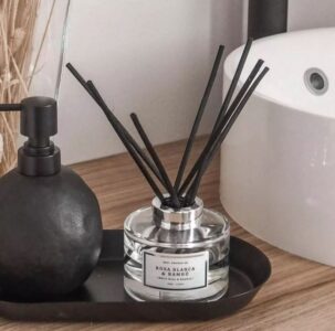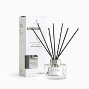Difusor de aroma Mikado con aroma a madera de Sándalo. Su aroma con notas amaderadas envolverá la casa y la llenará de un ambiente cálido muy especial. El sándalo tiene una fragancia balsámica, dulce y con un delicado fondo a madera.