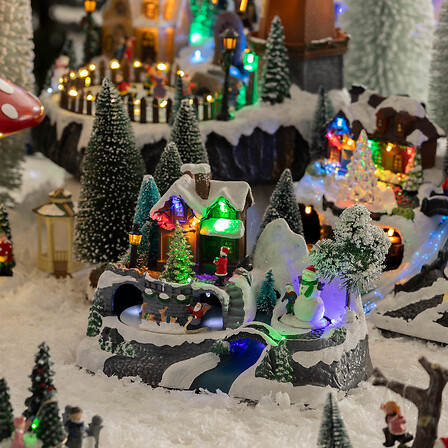 Pueblo navideño de Papá Noel con trineo y muñeco de nieve con movimiento 10 LED