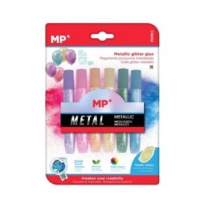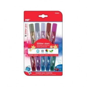 Pack con seis tubos de pegamento de colores oscuros con purpurina. Aporta un toque de diversión a tus proyectos artísticos y manualidades. Producto fácil de limpiar en la mayoría de superficies y textiles.
