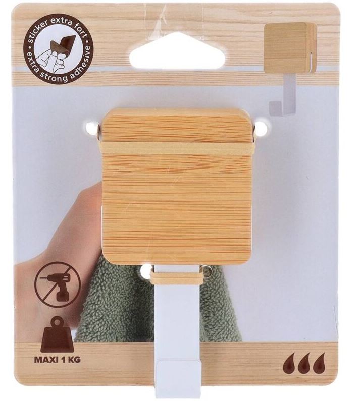 GANCHO DOBLE CON BASE DE BAMBÚ BLANCO/BAMBÚ €3.99 IVA incl.