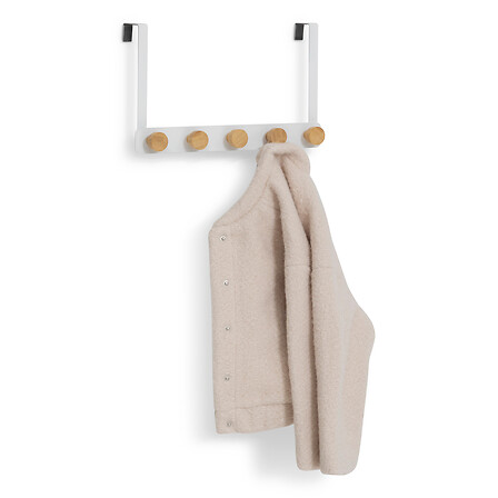 Perchero para puerta de metal y bambú blanco con 5 colgadores