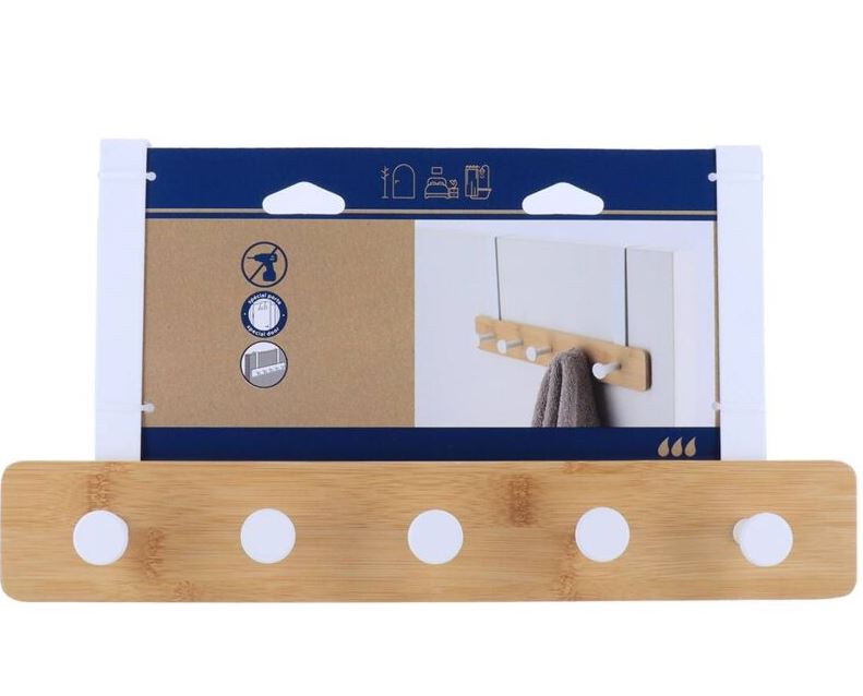 PERCHERO BAMBU/METAL 5 GANCHOS – BAMBU/BLANCO