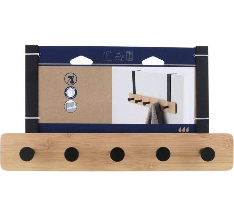 PERCHERO BAMBU/METAL 5 GANCHOS – BAMBU/NEGRO