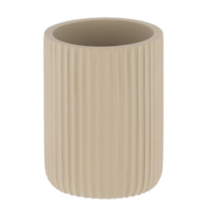 Vaso organizador para los cepillos de dientes. Fabricado con poliresina verde esmeralda, con la base de bambú natural.