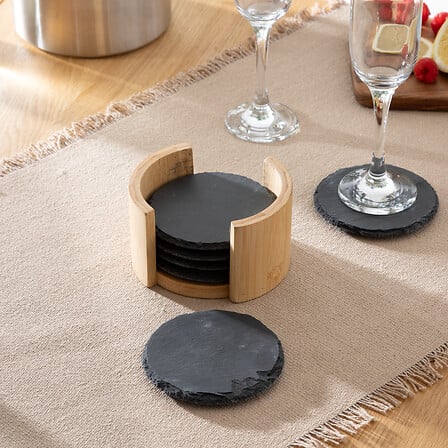 Juego de 6 posavasos de pizarra 10 cm diám. con soporte