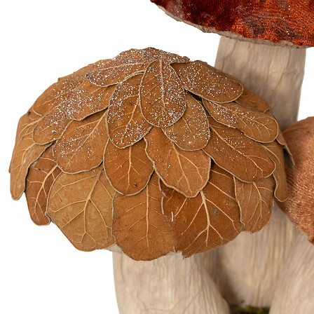 SET DE HONGOS POLIESTIRENO Y TERCIOPELO. 21 CM DE ALTO. MARRON