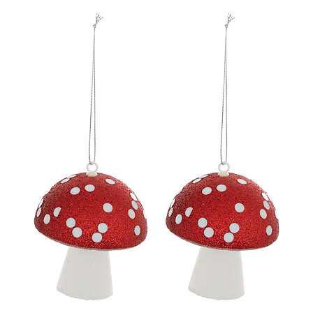 Lote de 2 figuras hongo poliestireno altura 9 cm rojo y blanco