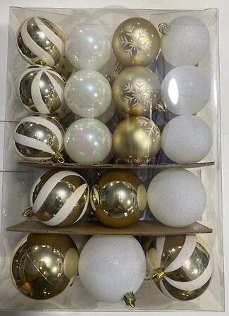 Lote de 60 bolas de diámetro surtido, poliestireno reciclado, dorado y blanco