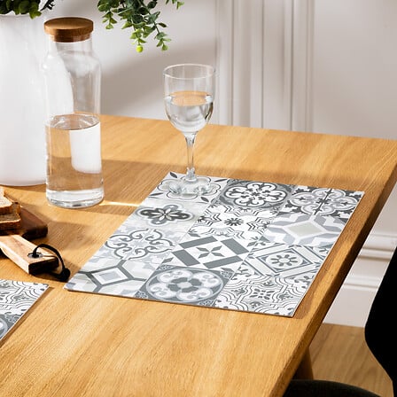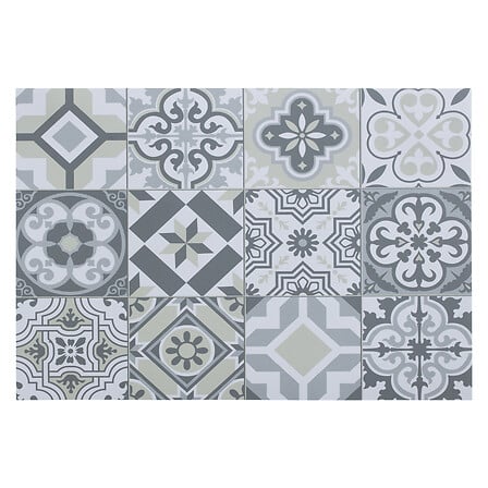 Mantel individual de vinilo tipo mosaico 45 x 30 cm, diseño de baldosa hidráulica gris