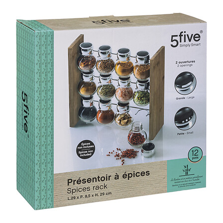 SOPORTE DE BAMBU CON 12 BOTES DE ESPECIAS